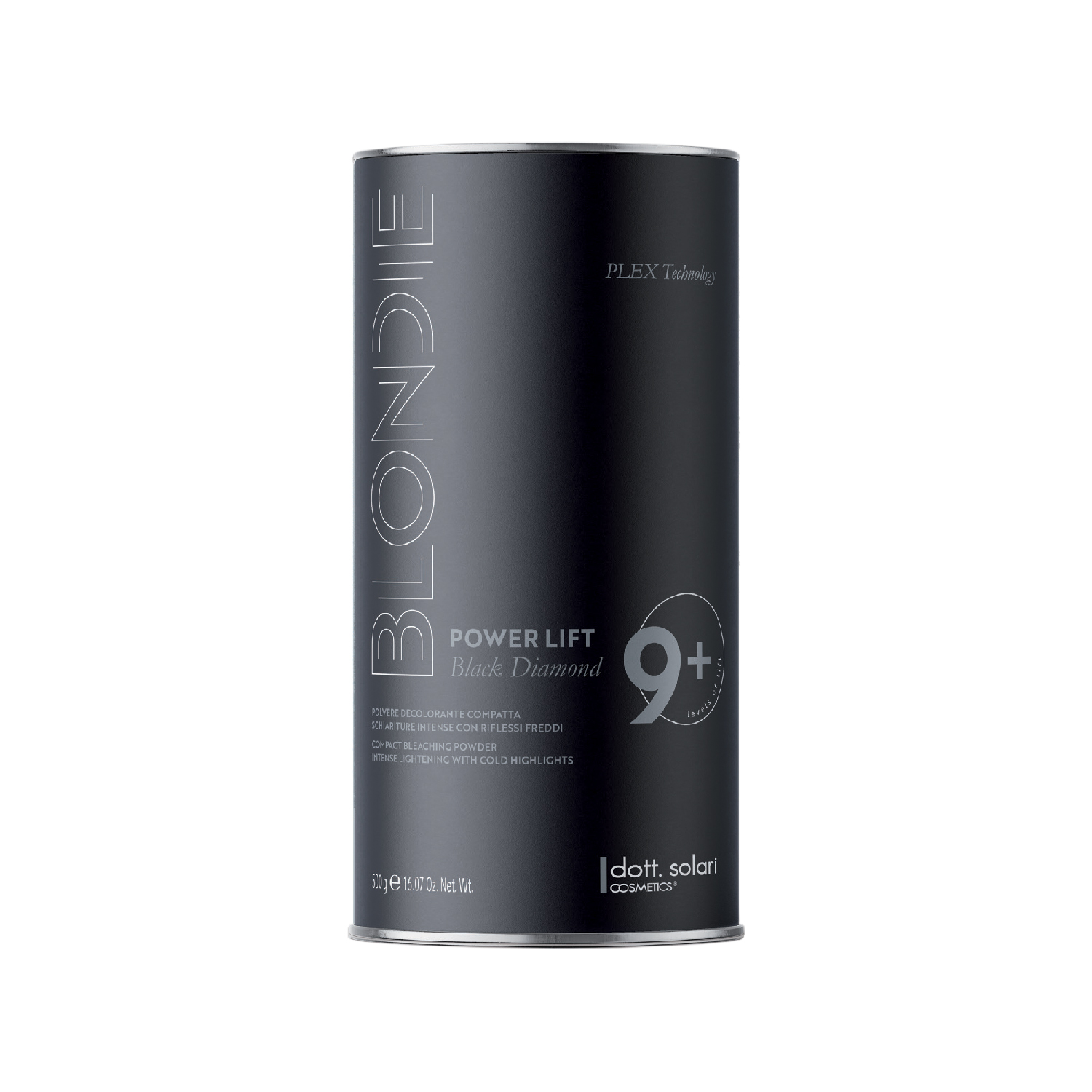 Compact black bleaching powder with low ammonia content. During lightening, it neutralizes yellow tones and deposits gray pigment for exceptionally cold highlights. With PLEX technology, it allows to lighten up to 9 tones and more, without damaging the hair structure.
