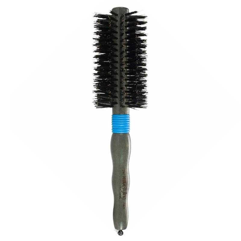 Επαγγελματική βούρτσα μαλλιών στρόγγυλη. Η εργονομική λαβή της διαθέτει λαστιχένιο κρίκο για έλεγχο στο κράτημα.