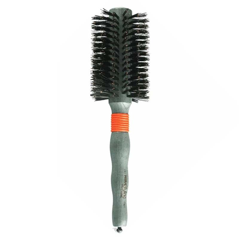 Επαγγελματική βούρτσα μαλλιών στρόγγυλη. Η εργονομική λαβή της διαθέτει λαστιχένιο κρίκο για έλεγχο στο κράτημα.
