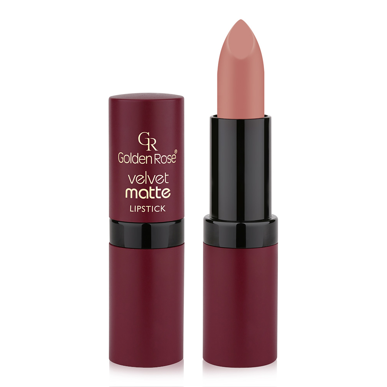 Golden Rose Velvet Matte Lipstick creates matte velvety finish on the lips with its high pigmented and long wearing formula.