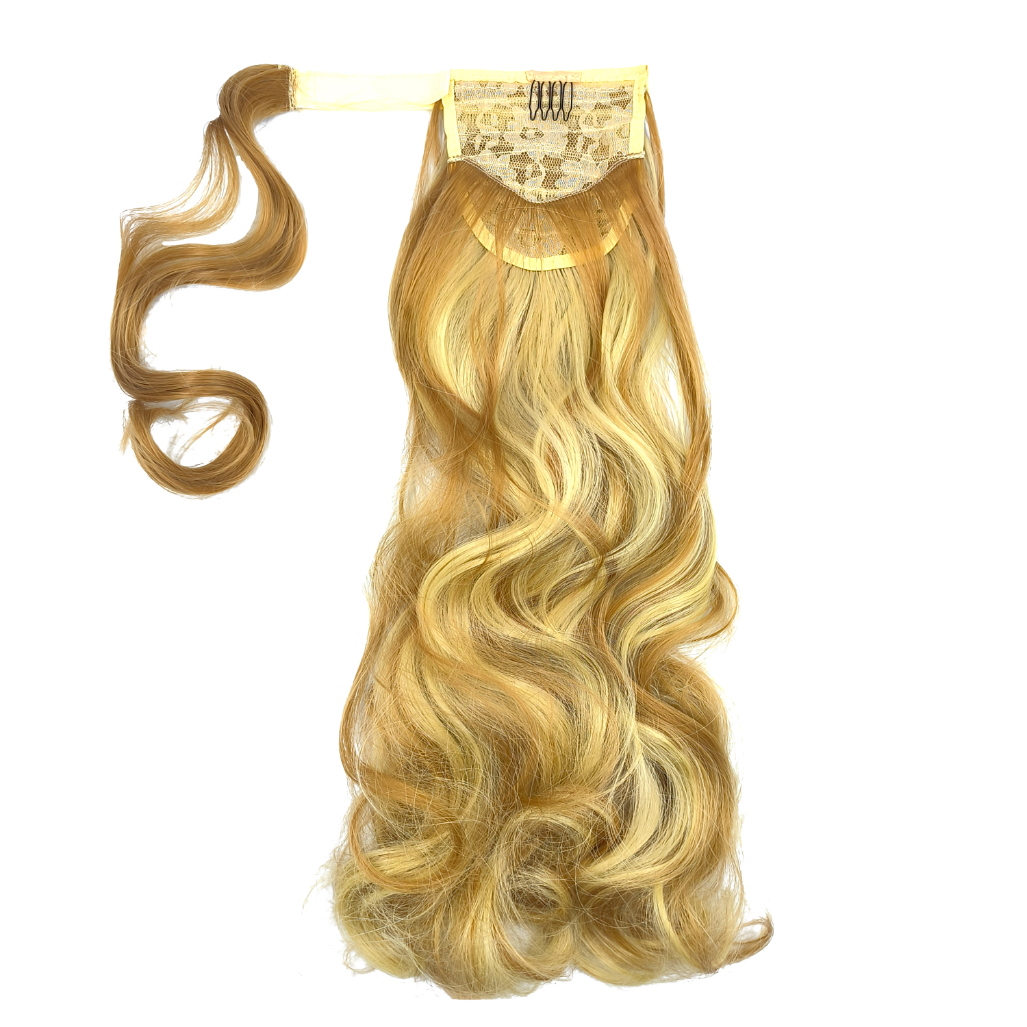 Συνθετικό Ponytail Σγουρό Wrap Around με Clips 50cm - 9.0/10.0 GOLDEN & LIGHT ASH BLONDE